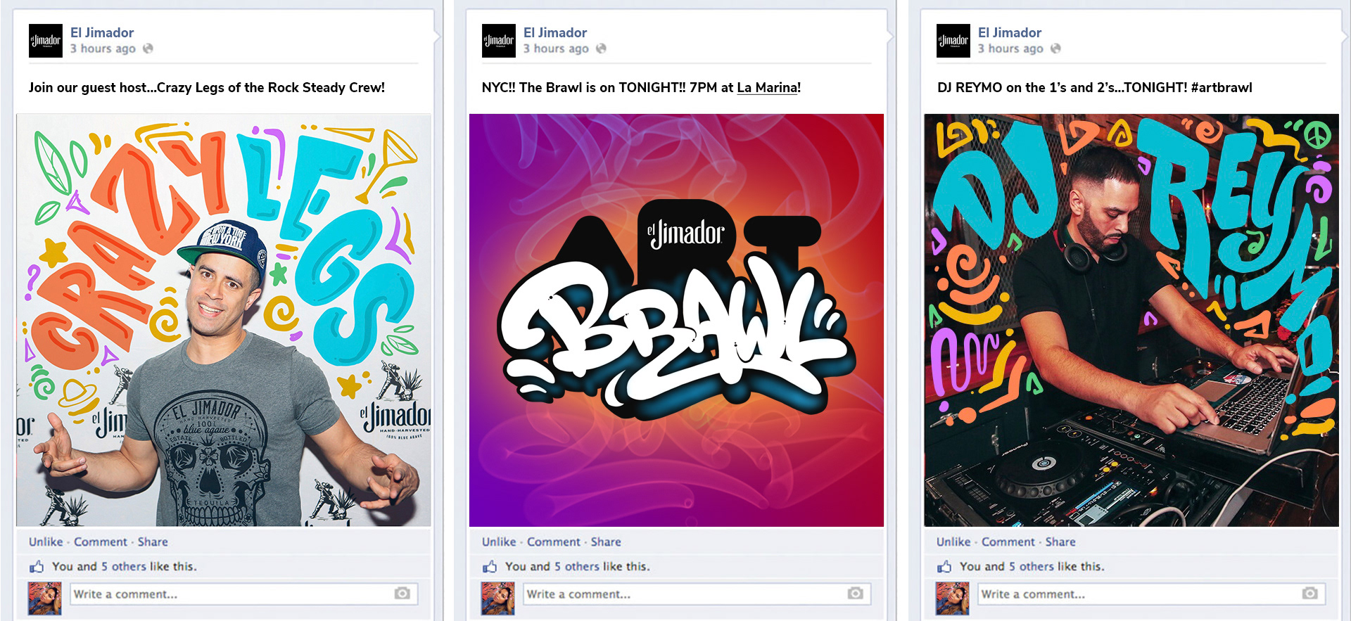 El Jimador makes world class tequilas—hand-harvested in Mexico from 100% blue agave. The El Jimador Art Brawl is an activation event fostering creativity and craft; two key principles in the process of making their product.